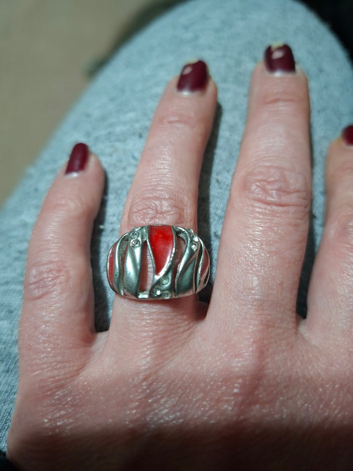Kırmızı renkte, boncuk detaylı ve vintage tarzda kadın yüzük