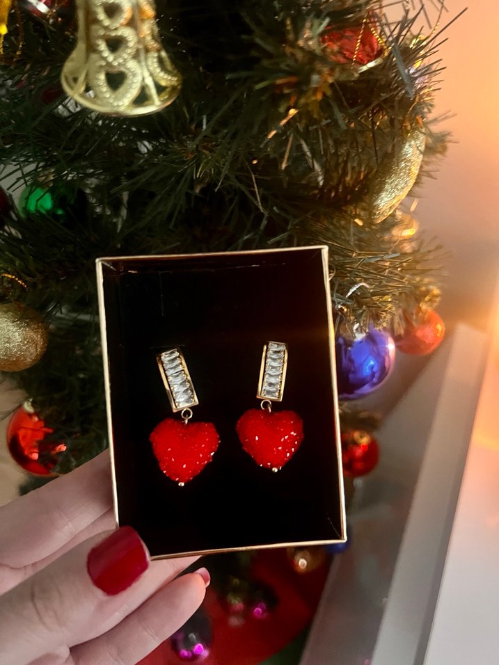 Kırmızı boncuk işlemeli çelik mini kalp küpeler, cesur ve göz alıcı bir tarz için uygun. ❤️