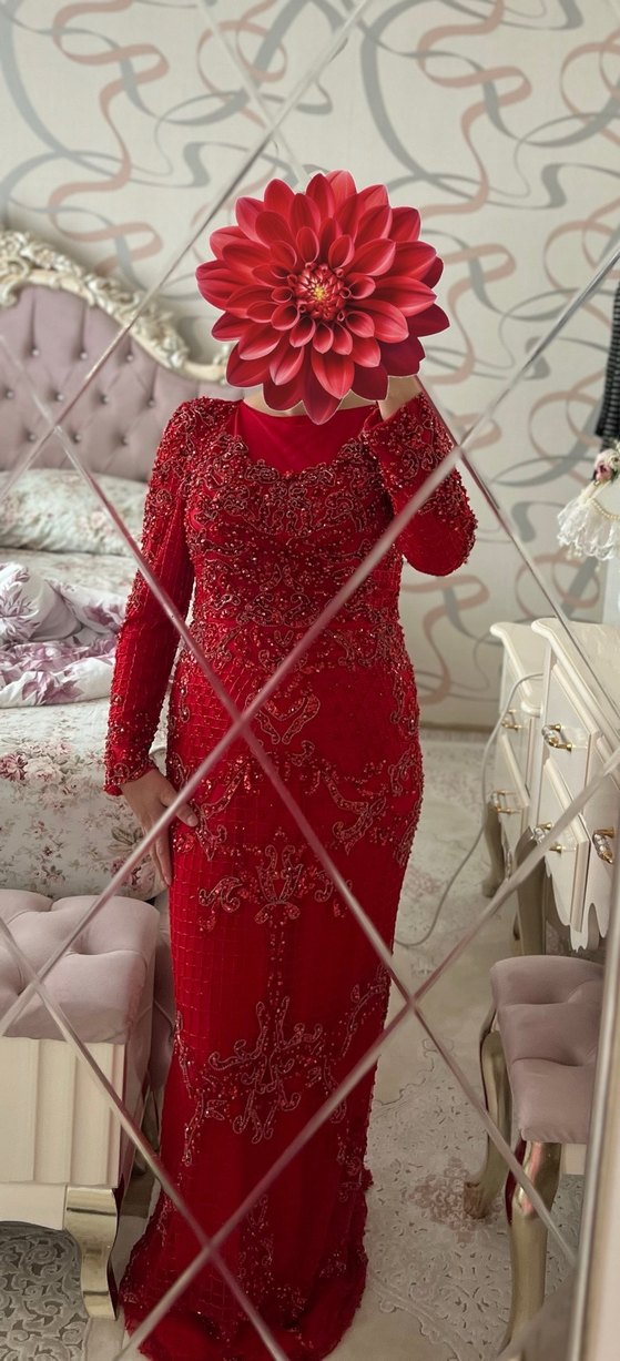 kırmızı renkli, uzun kollu ve vücuda oturan bu boncuk işlemeleri göz alıcı bir şıklık sunar. Düğün için uygundur. (KİRALIKTIR )❣️