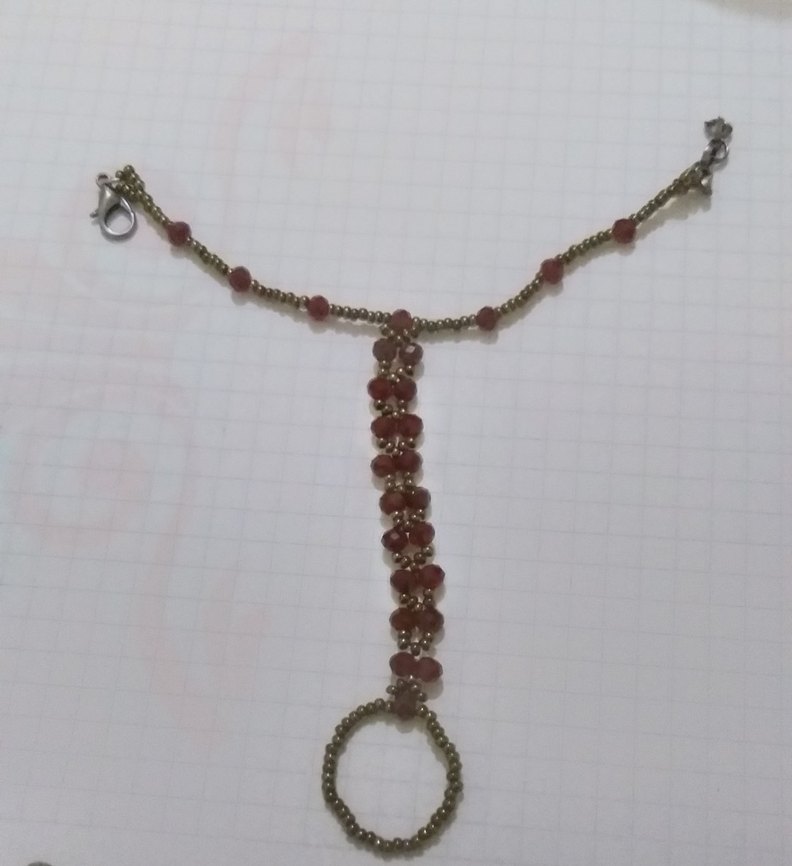 Kırmızı boncuklar ve yılan desenli bohem tarzda kadın el zinciri,şahmeran. Çocuklar için uygundur ya da küçük elliler için. Büyük boyu mevcuttur ancak boncukları zümrüt yeşili ve gold renkli. Hediyeydi kullanılmadı hiç