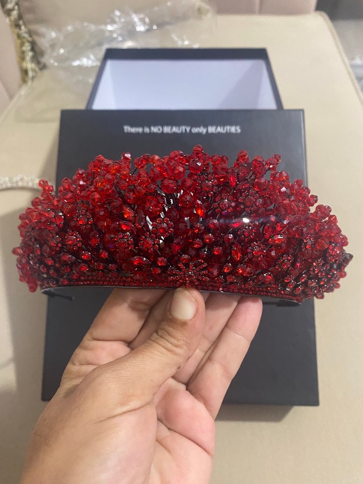 Koyu kırmızı plastik boncuklarla süslenmiş, bohem tarzda göz alıcı bir saç aksesuarı. Trend belirleyiciler için şık ve dikkat çekici. #kınatacı #kınasaçaksesuarı #kırmızıtaç #saçaksesuarı #kına #gelin #kınasüsü #kınatokası #gelinduvak #kınalık #gelinlik #kınaaksesuar