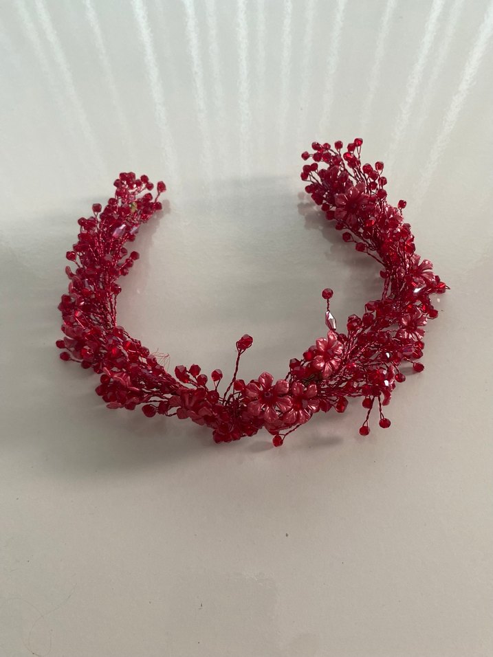 Kırmızı boncuklarla süslenmiş, bohem tarzda saç aksesuarı. Canlı renkleriyle göz alıcı bir görünüm sağlar. 1 kez kullanıldı