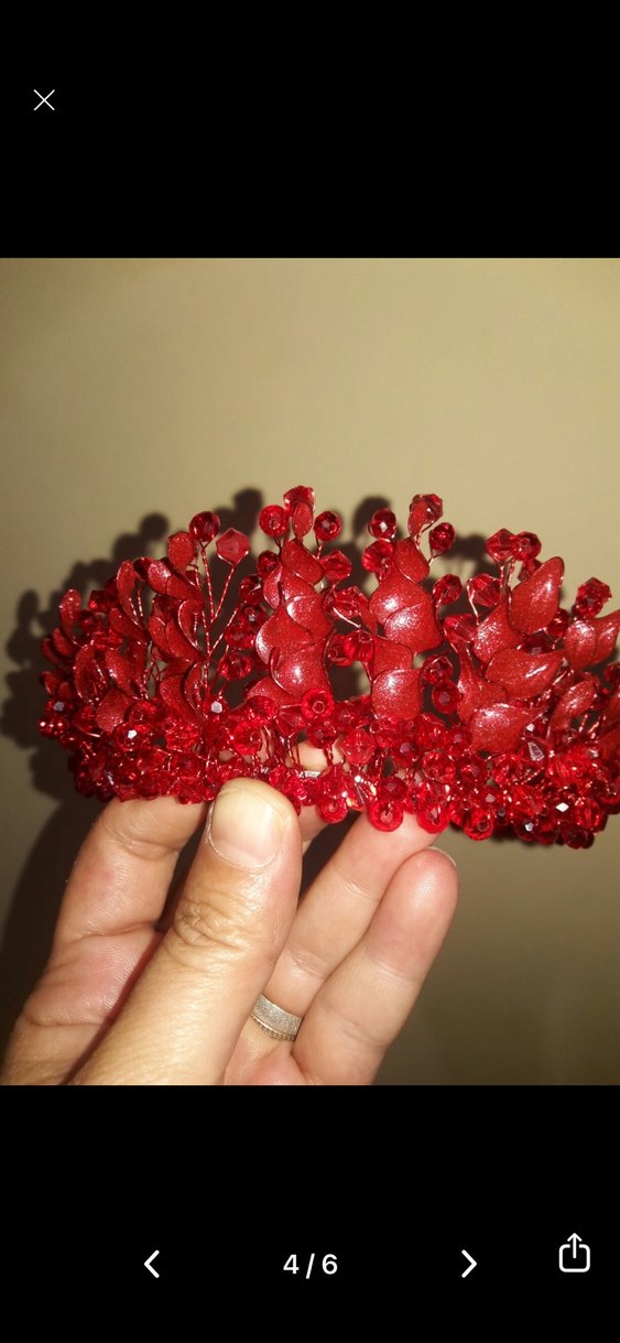 Kırmızı cam boncuklu gelin kına gecesi tacı.