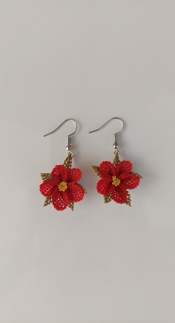 Kırmızı Boncuklu Çiçek Küpe