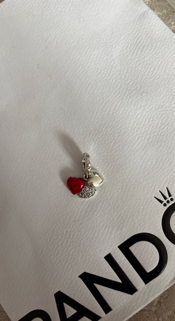 Kırmızı boncuklu kalp, gümüş kalp ve küçük boncuklardan oluşan kadın charm, romantik akşamlar için uygun. Minimalist ve sokak tarzına uyum sağlar. ❤️