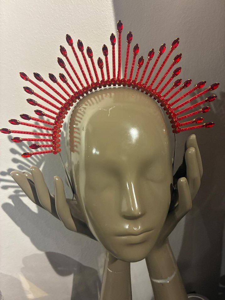 Renkli kırmızı cam boncuklarla süslenmiş, kına tacı. defosu yoktur