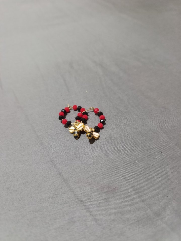 Düğünler ve şık kombinler için bohem tarzda, işlemeli detaylı kısa kırmızı boncuklu kadın küpe. Hiç takmadim