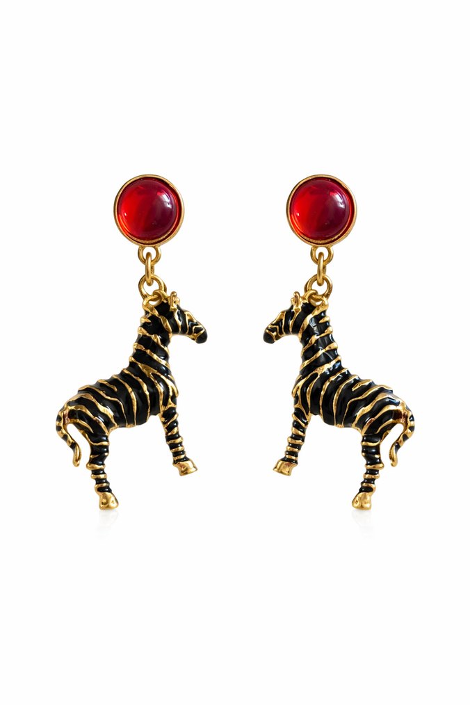 Kırmızı Boncuklu Zebra Figürlü Midi Küpeler