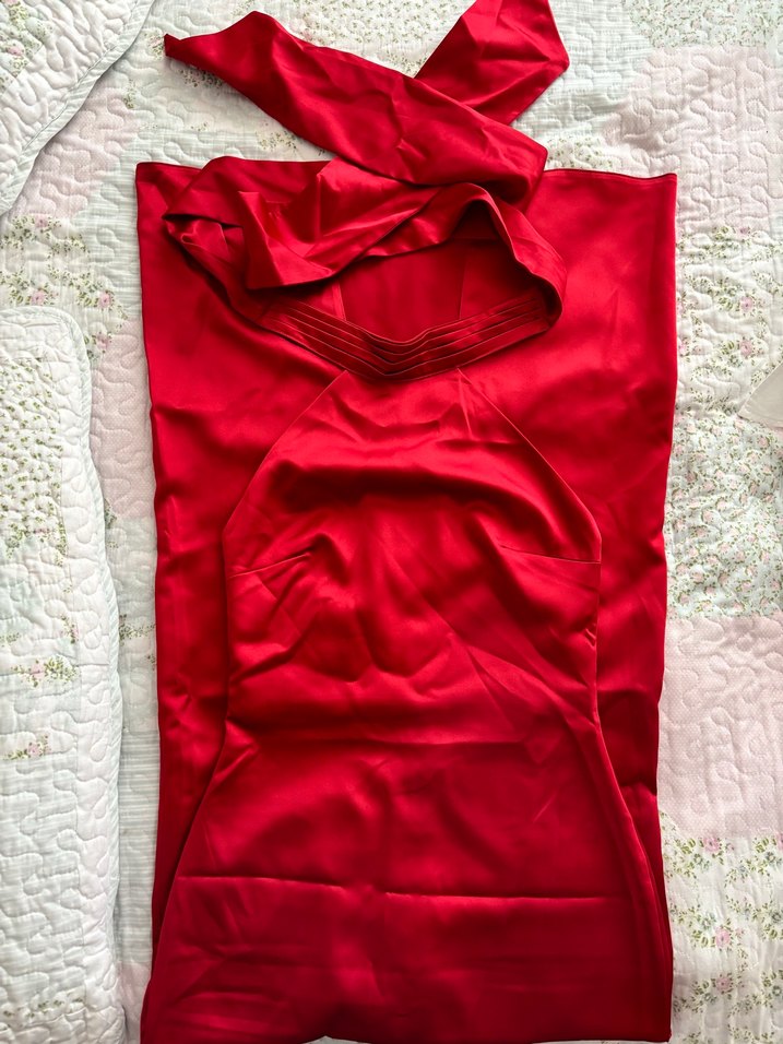 Kırmızı renkli, boyundan ve kolsuz uzun kadın elbisesi. Drapeli ve parlak tasarımıyla minimalist bohem tarzda, romantik akşamlar için uygun. ❤️ Ürünü sadece bir kez kullandım.Saten kumaşa,canlı kırmızı renge sahip.Uzun boylu kızlar gönül rahatlığıyla kullanabilir.Elbise ütülendiği takdirde jilet gibi gözüküyor,gayet kaliteli tok duran saten kumaşa sahip.Ürünü yaklaşık iki ay önce satın aldım.