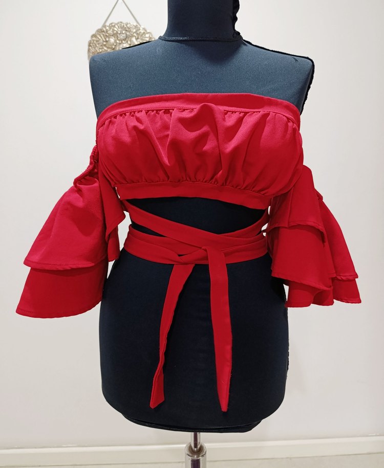 S beden kolları iki kat volanlı arkadan fermuarlı büstiyer