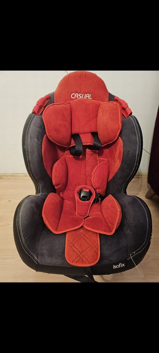 Kırmızı CASUAL çocuk oto koltuğu, Isofix bağlantıları ve konforlu yastıklı destek sunar. AZAMİ AĞIRLIK 36 KG