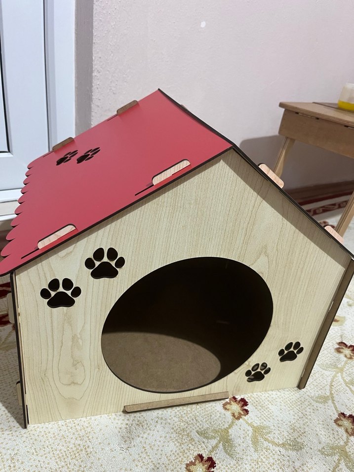 Kırmızı Çatılı Ahşap Kedi Evi