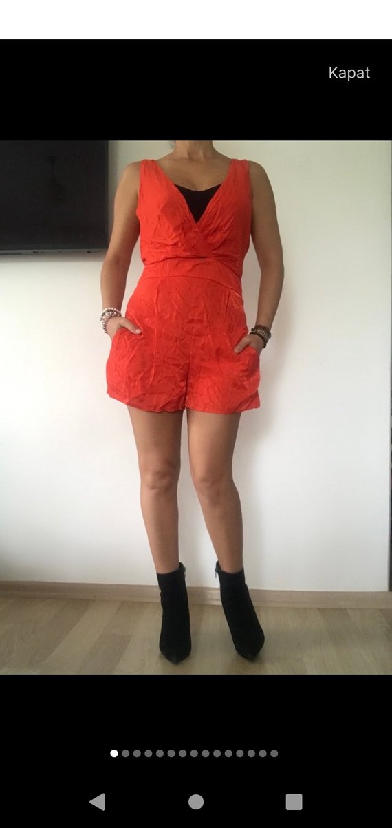 Parlak kumaş göğüs orta kısımda minik bir iki leke mevcut göze batmıyor etiket bedeni 40 ama kalıp 38 bedene uygun kol altlarından daraltıldı ölçü baz alınız
