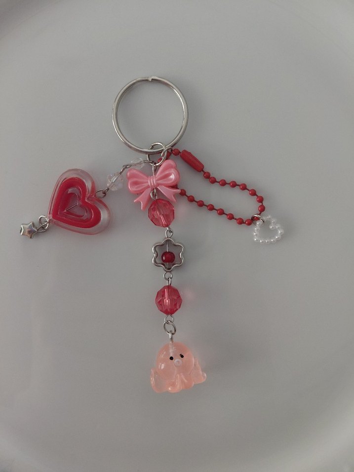 El yapımı kırmızı renkte karanlıkta parlayan , zincir detaylı anahtarlık. Kalp, fiyonk ve küçük ahtapot figürü gibi şirin aksesuarlar içerir. Goth ve bohem tarzını yansıtır.