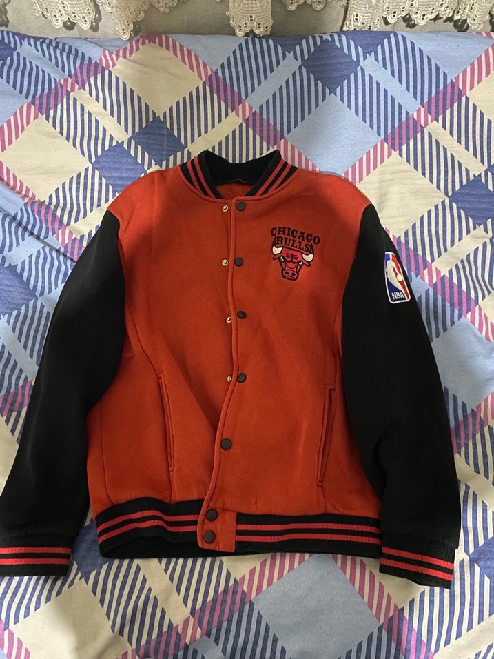 Düğmeli, uzun kollu ve yuvarlak yakalı bu dar kesim erkek ceket, yumuşak ve sıcak kumaştan üretilmiştir. Koyu kırmızı gövde ve siyah kollarda Chicago Bulls ve NBA baskıları bulunur. Bir kaç defa kullanılmış