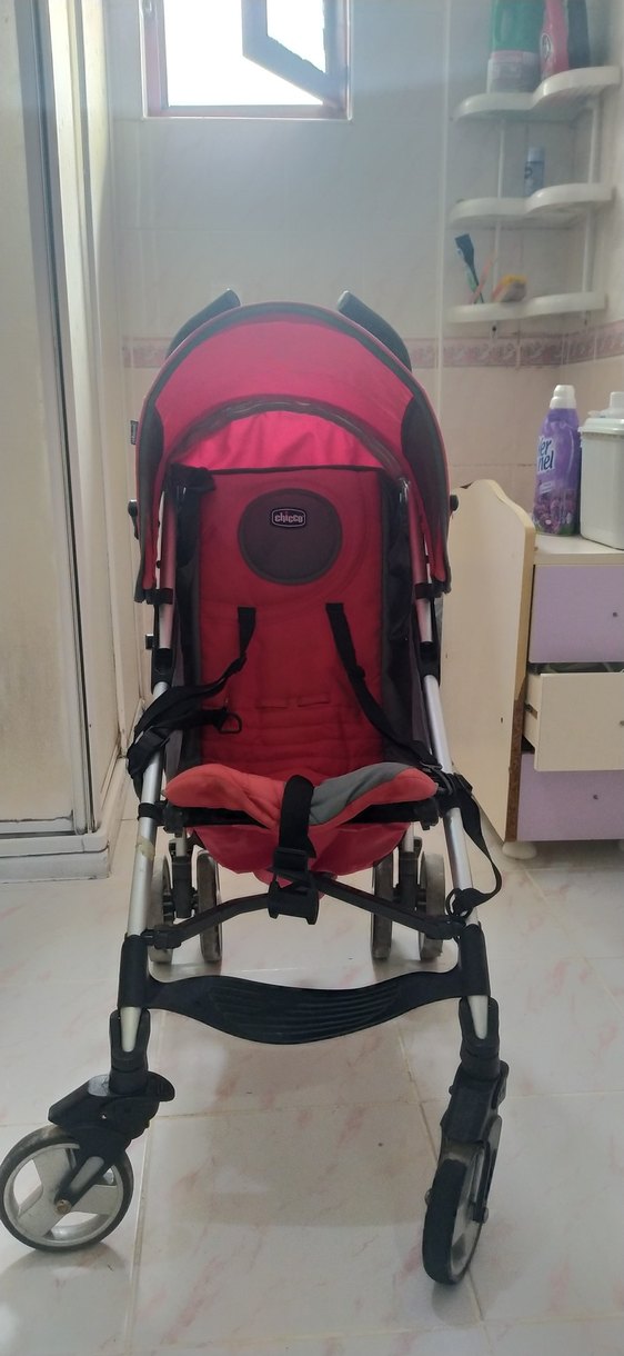 Chicco marka koyu kırmızı renkli bebek arabası, koruyucu tente ve güvenli kemer sistemi ile konforlu ve güvenli kullanım sağlar.
