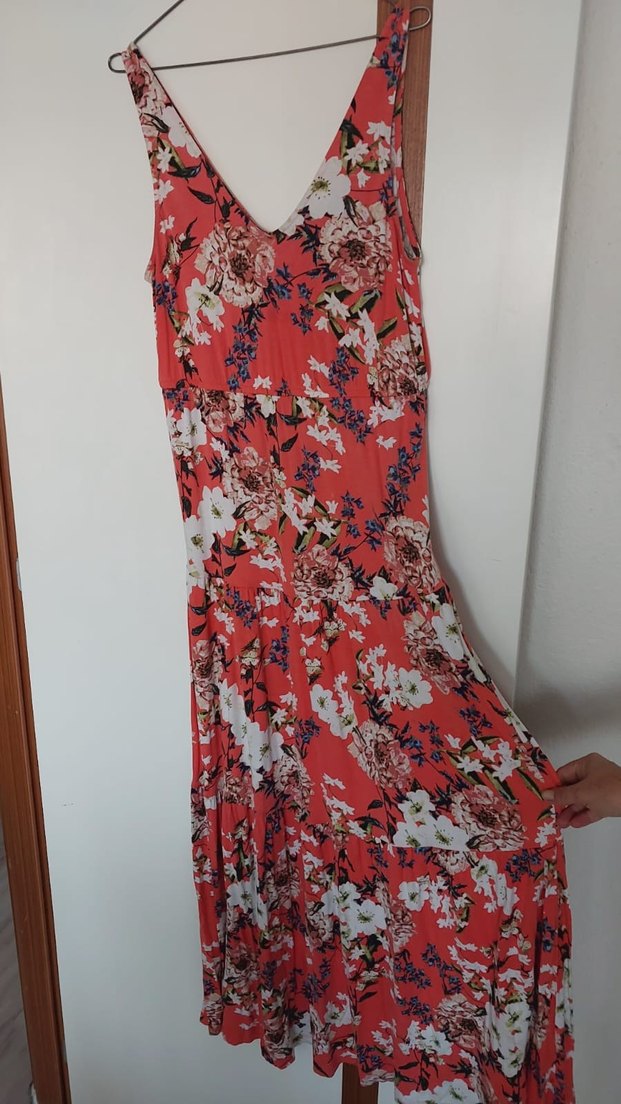 Kırmızı Çiçek Desenli Bohem Uzun Elbise