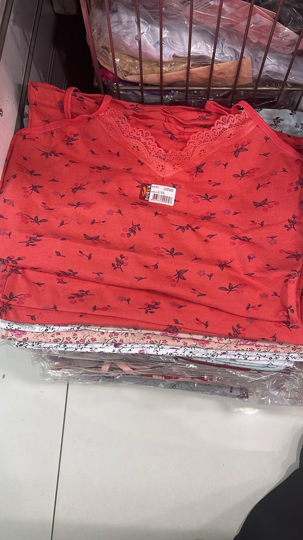 Kırmızı mini kadın atlet, renkli çiçek desenli ve yakasında dantel detaylı, rahat sokak stili sunar.