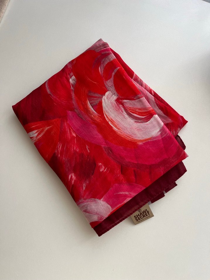 Kırmızı çiçek desenli şal