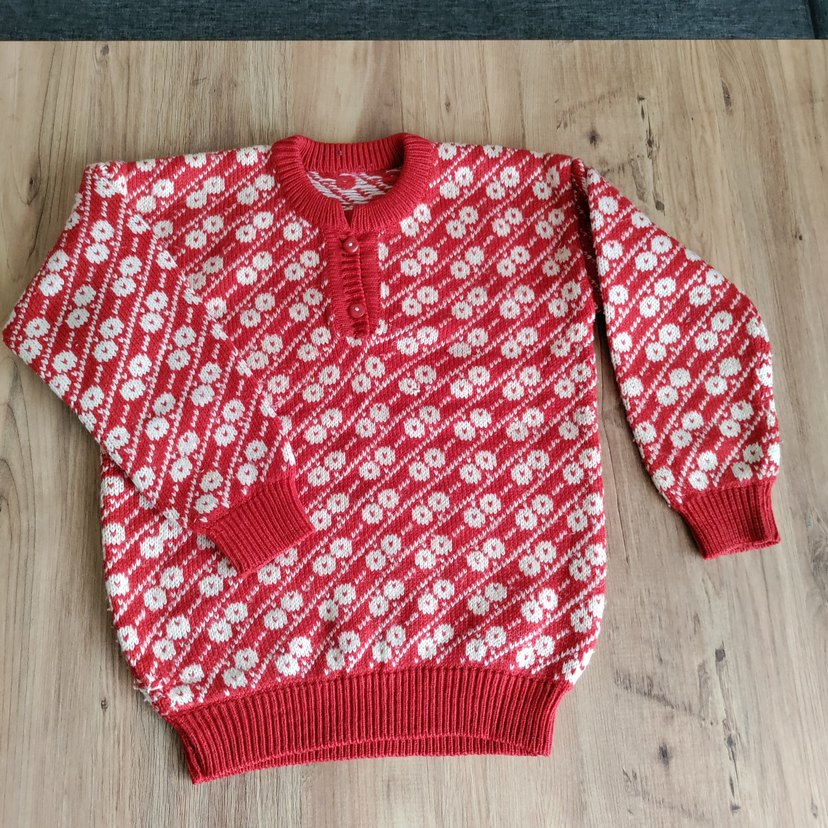 Kırmızı Çiçek Desenli Triko kazak