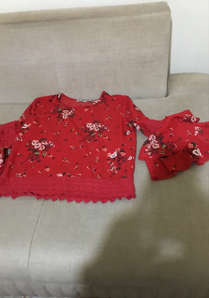 Kırmızı Çiçekli Dantel Detaylı Bohem Bluz