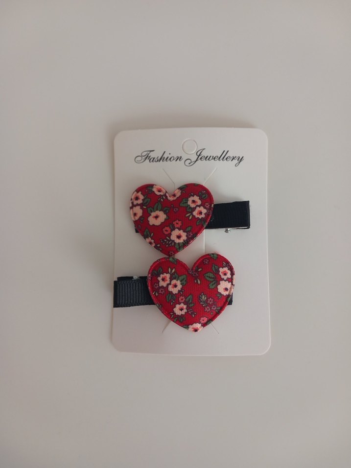 Kırmızı Çiçekli Kalp Figürlü Toka Seti