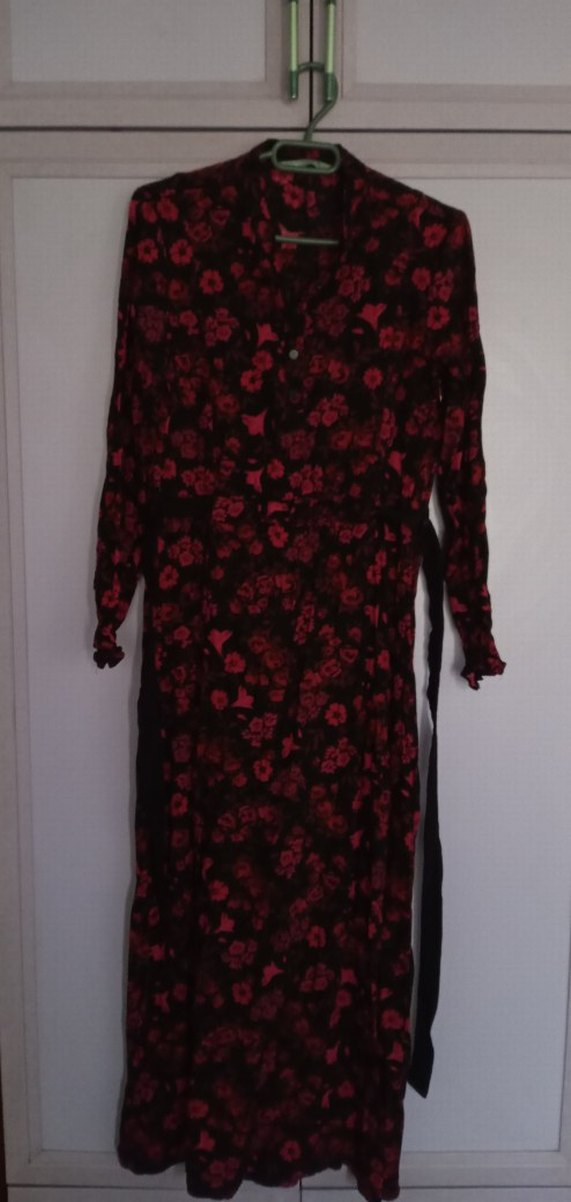 Kırmızı Çiçekli Uzun Kollu Uzun Elbise
