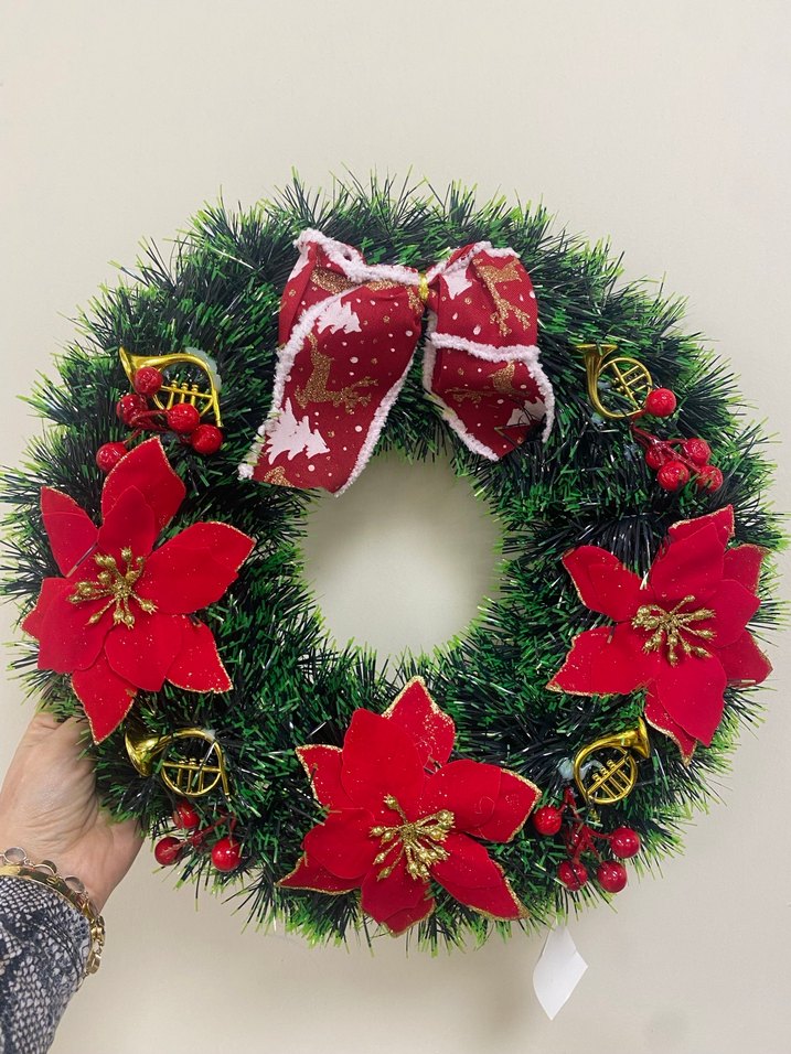 Kırmızı Çiçekli Yılbaşı Kapı Çelengi