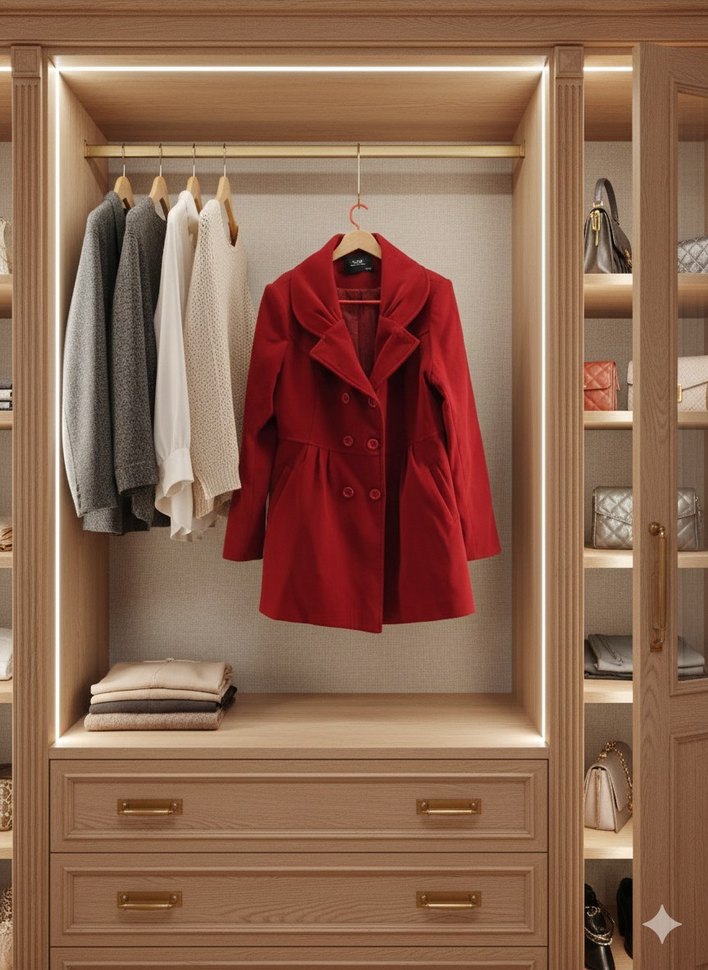 Kırmızı Çift Düğmeli Kaban