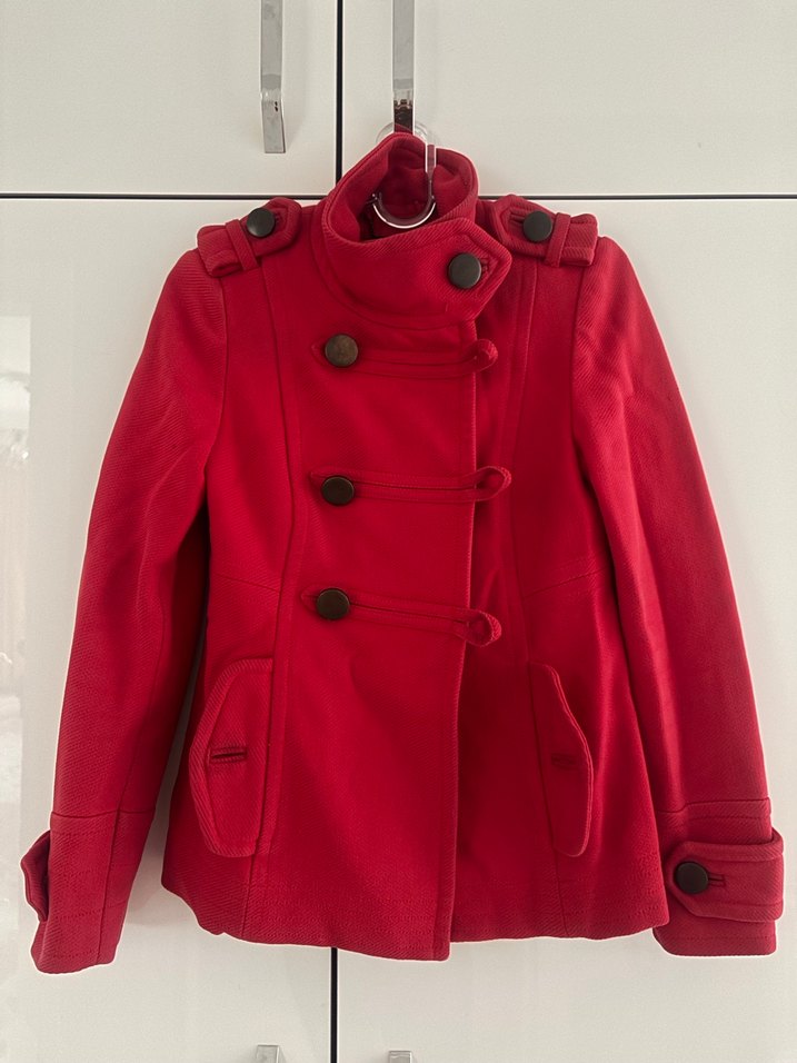 Kırmızı Çift Düğmeli Kadın Kaban