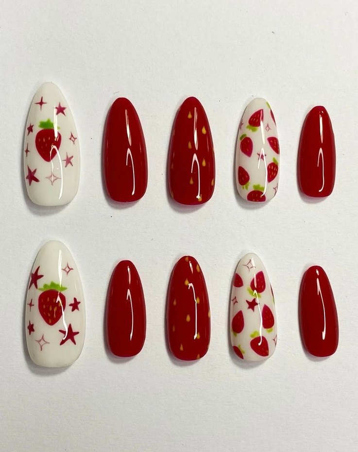 Kırmızı Çilek Desenli Takma Tırnak Seti