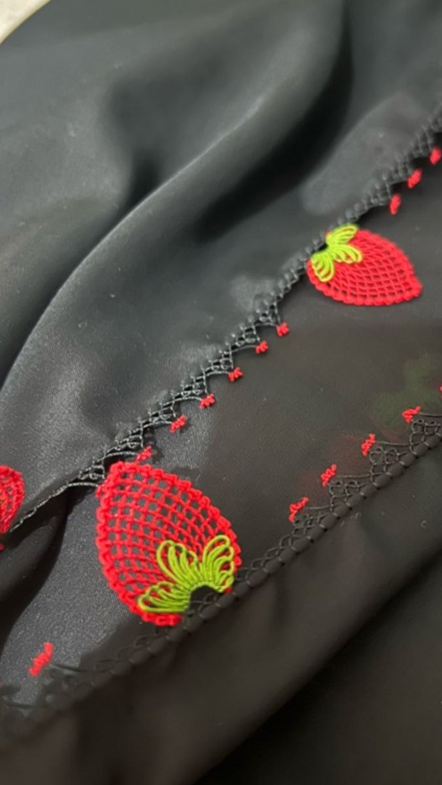 Kırmızı çilek modeli iğne oyası yazma