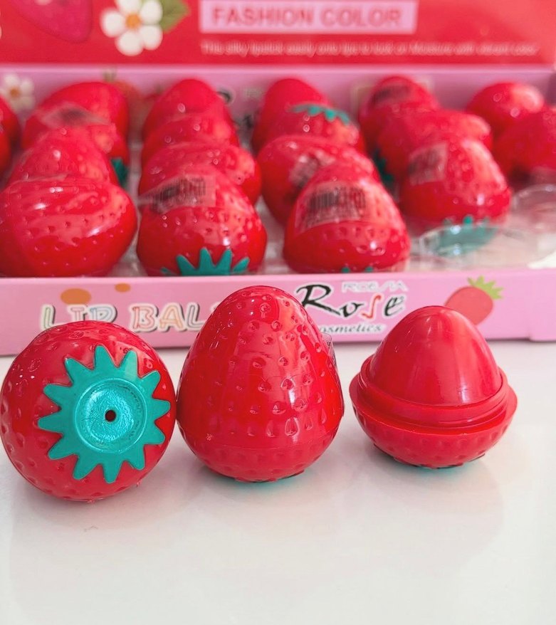 Çilek şeklinde, kırmızı renkte ve üzerinde 'BAL' yazısı bulunan renkli dudak parlatıcısı. Canlı parlaklık sağlar.