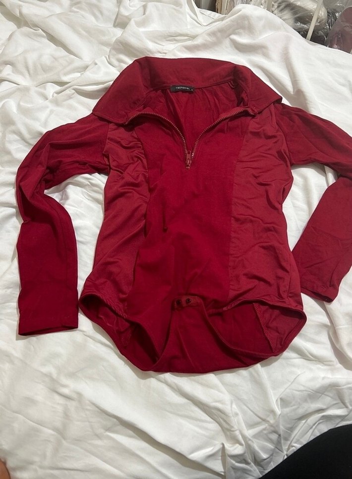 Kırmızı, uzun kollu, fermuarlı, yüksek yakalı spor bluz. Yumuşak ve sıcak kumaştan yapılmıştır, günlük kullanıma uygundur. Az giydim.