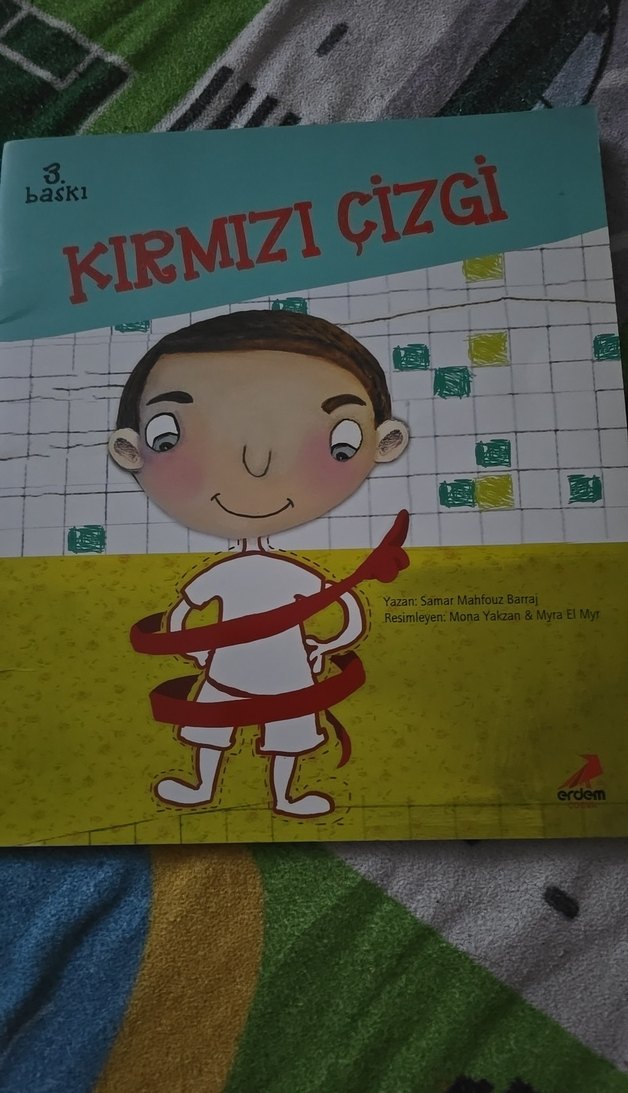 "Kırmızı Çizgi" çocuk kitabı, Okul öncesi ve ilkokul çocukları için sınırlarını koruma, mahremiyetini muhafaza gibi durumları çok güzel izah eden bir kitap. Biz çok istifade ettik. Hiçbir sorunu yok. Yeni gibi