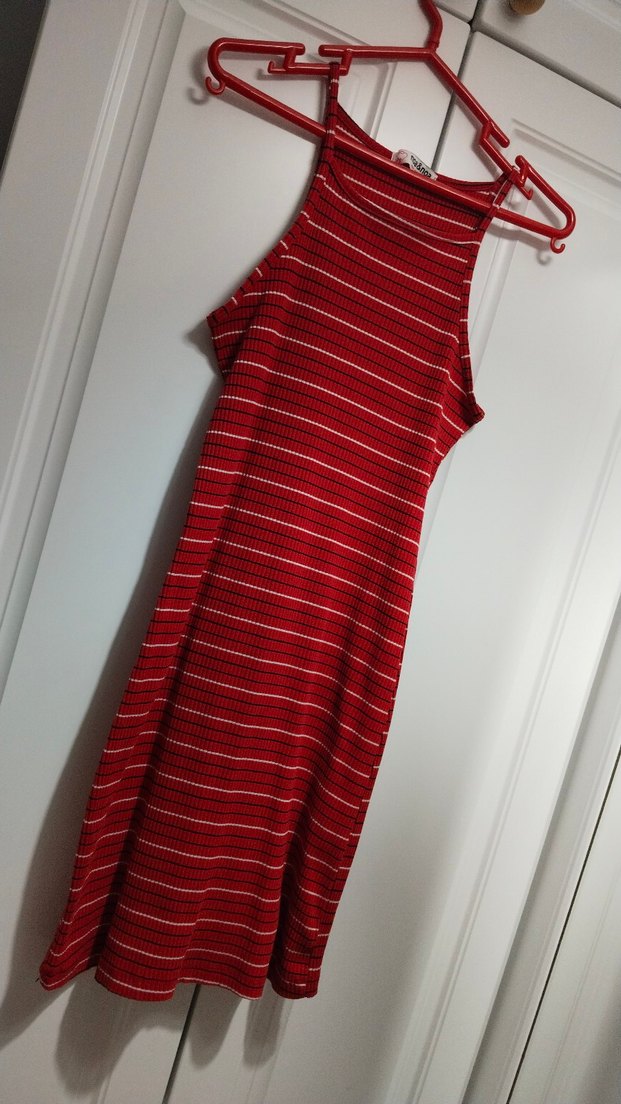Kırmızı Çizgili Askılı Elbise
