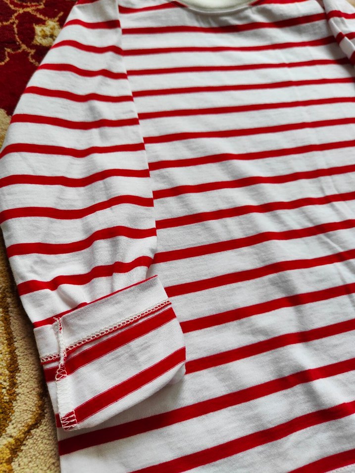 Çocuklar için kırmızı-beyaz renkli çizgili, mavi sweatshirt orijinal sıfır kullanılmamış 5/6 yaş