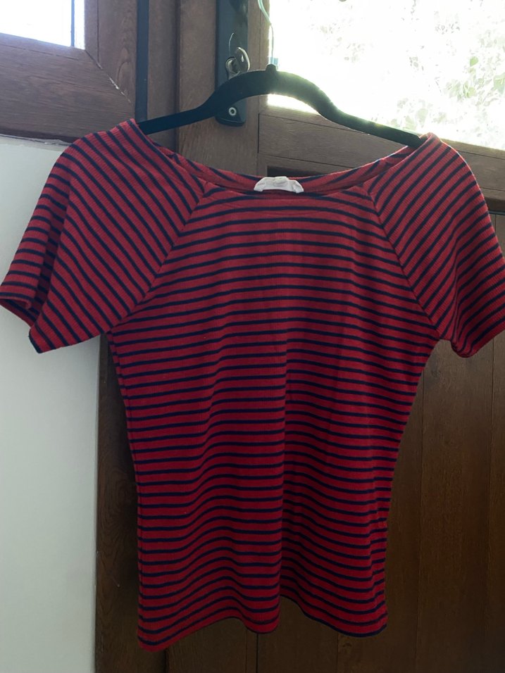Kırmızı Çizgili Hamile Bluzu, Kısa Kollu, Tekstil