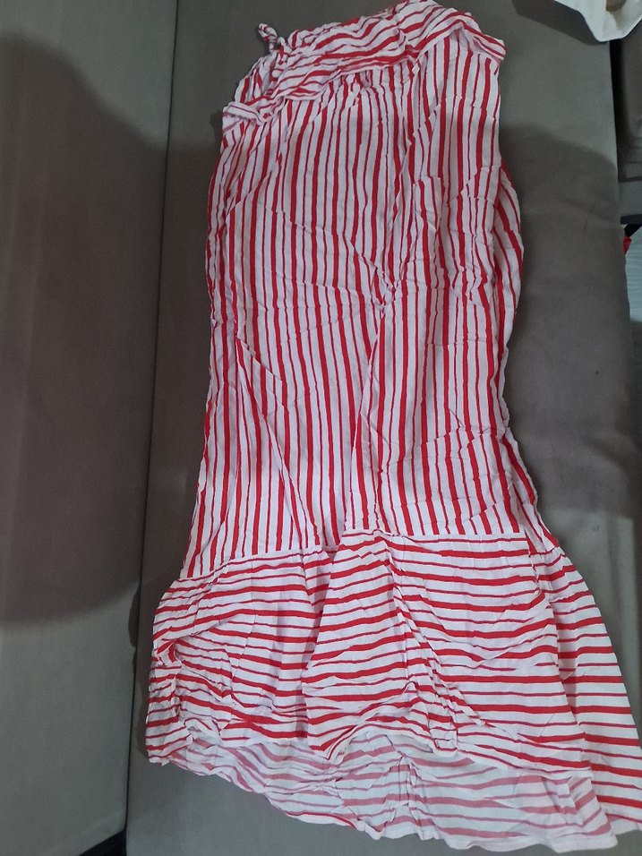 kırmızı çizgili ince askılı elbise