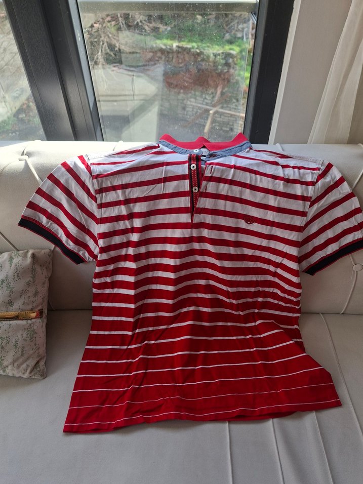 Kırmızı Çizgili Kısa Kollu Polo Tişört