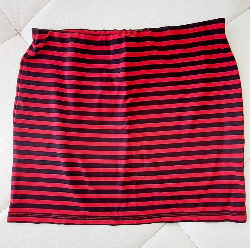 Kırmızı Çizgili Pilili Hamile Midi Etek