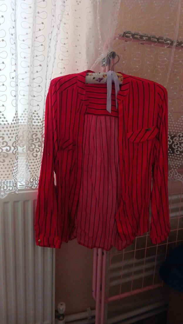 Kırmızı Çizgili Salaş Midi Kadın Gömlek