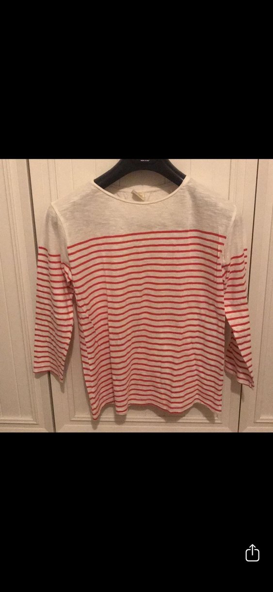 yuvarlak yaka ve uzun kolludur. Keten dokusu ve kırmızı çizgili tasarımıyla rahat ve günlük kullanıma uygundur.