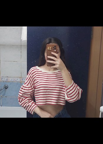 Kırmızı Çizgili Uzun Kollu Midi Sweatshirt