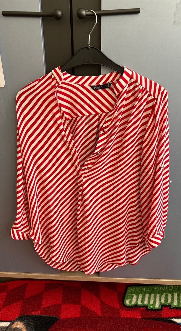 Kırmızı Çizgili V Yakalı Kadın Gömlek