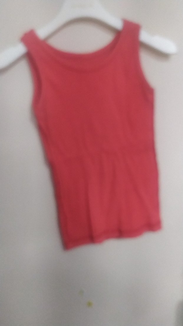 Kırmızı renkte, yumuşak kumaştan yapılmış, kolsuz çocuk atleti, katmanlama için uygundur.