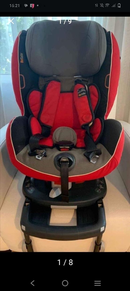 Koyu kırmızı renkli, yumuşak dolgulu kayışları ve güvenli tokaları ile çocuklar için konforlu ve güvenli oto koltuğu. sorunsuz yükseklik ayarlanabiliyor camdan rahatça dışarıyı izleyebiliyor.