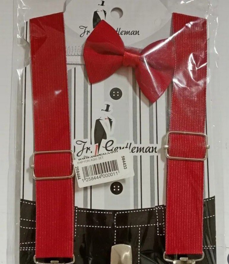 Kırmızı Çocuk Pantolon Askısı ve Papyon