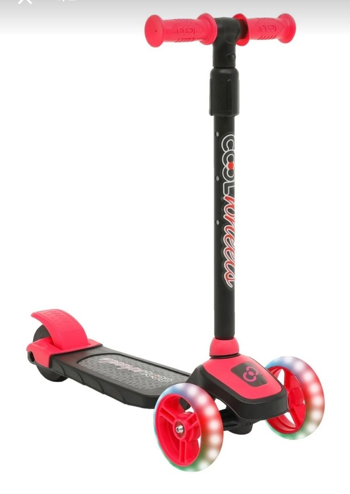 Kırmızı renkli çocuk scooter'ı, LED ışıklı tekerlekleri ve rahat tutma yerleriyle güvenli sürüş sağlar.