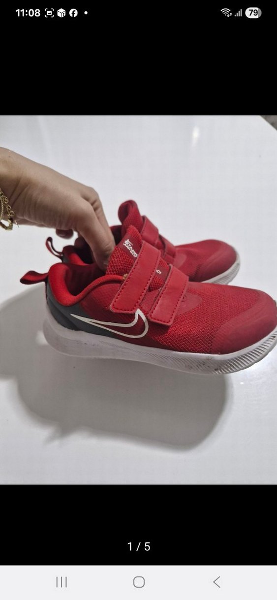 Kırmızı, renkli sokak tarzı çocuk spor ayakkabısı. Dayanıklı ve rahat kauçuk tabanlı, cırt cırtlı kapanışlı. orjinal nike ürünü. 27 numara çok hafif nefes alabilen bir ayakkabı